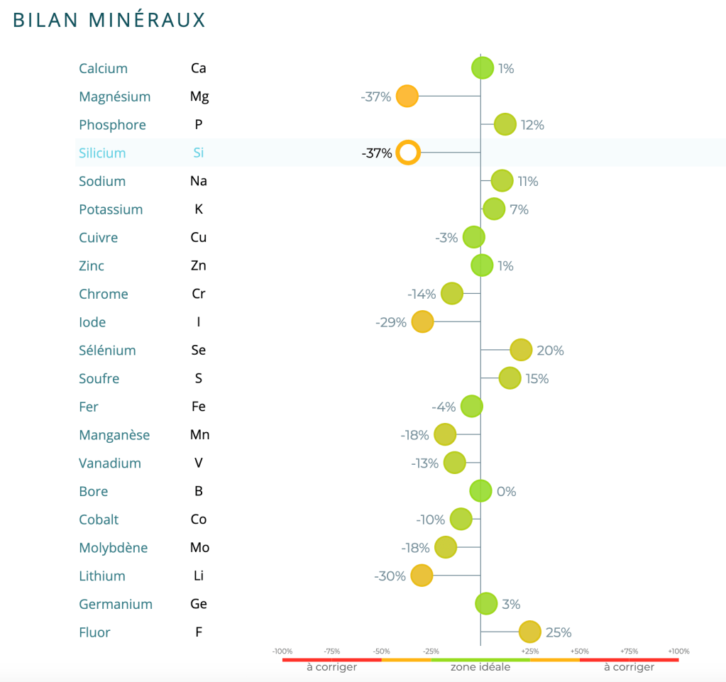 Grâce à une spectrométrie optique réalisée en 2 minutes (simple scan du poignet), ce bilan mesure précisément vos niveaux de minéraux, oligo-éléments et métaux lourds. Il met en lumière vos carences, excès ou déséquilibres minéraux, essentiels à toutes vos fonctions biologiques.